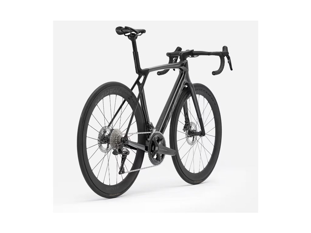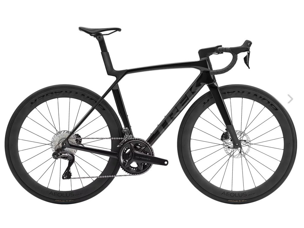 - Vidlice: Madone Gen 8 celokarbonová konstrukce, karbonový kónický sloupek, vnitřní vedení brzdových lanek, kotouč s úchytem Flat Mount, zkosená pevná osa 12 x 100 mm.